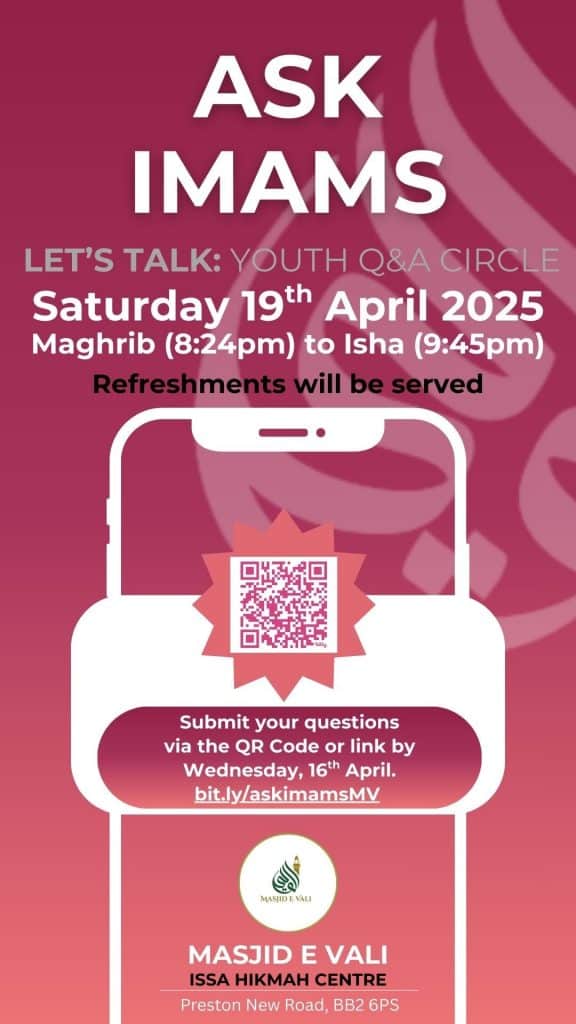 π Location: Masjid E Vali, Issa Hikmah Centre, Preston New Road, BB2 6PS